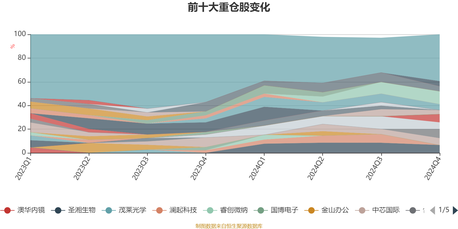 截至2024年四季度末,基金十大重仓股分别是海光信息、合合信息、寒武纪、圣湘生物、中芯国际、威胜信息、优利德、同花顺、中微公司、中控技术。