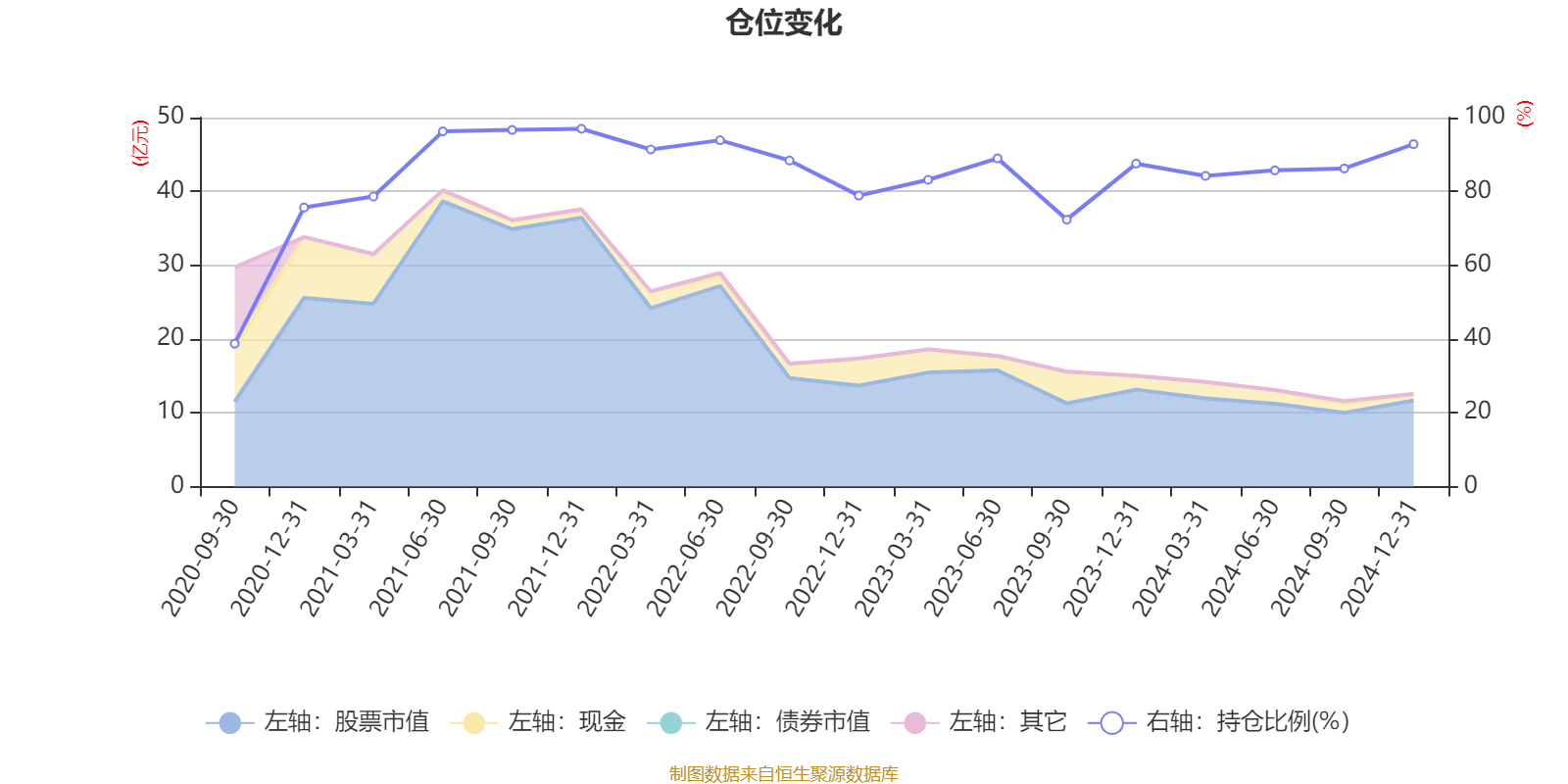 据定期报告数据统计,近三年平均股票仓位为86.11%,同类平均为87.17%。2021年末基金达到96.96%的最高仓位,2020年三季度末最低,为38.74%。